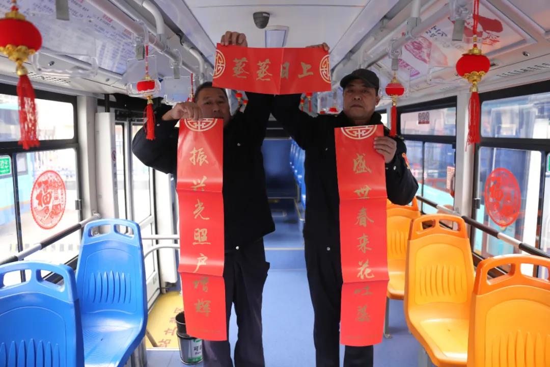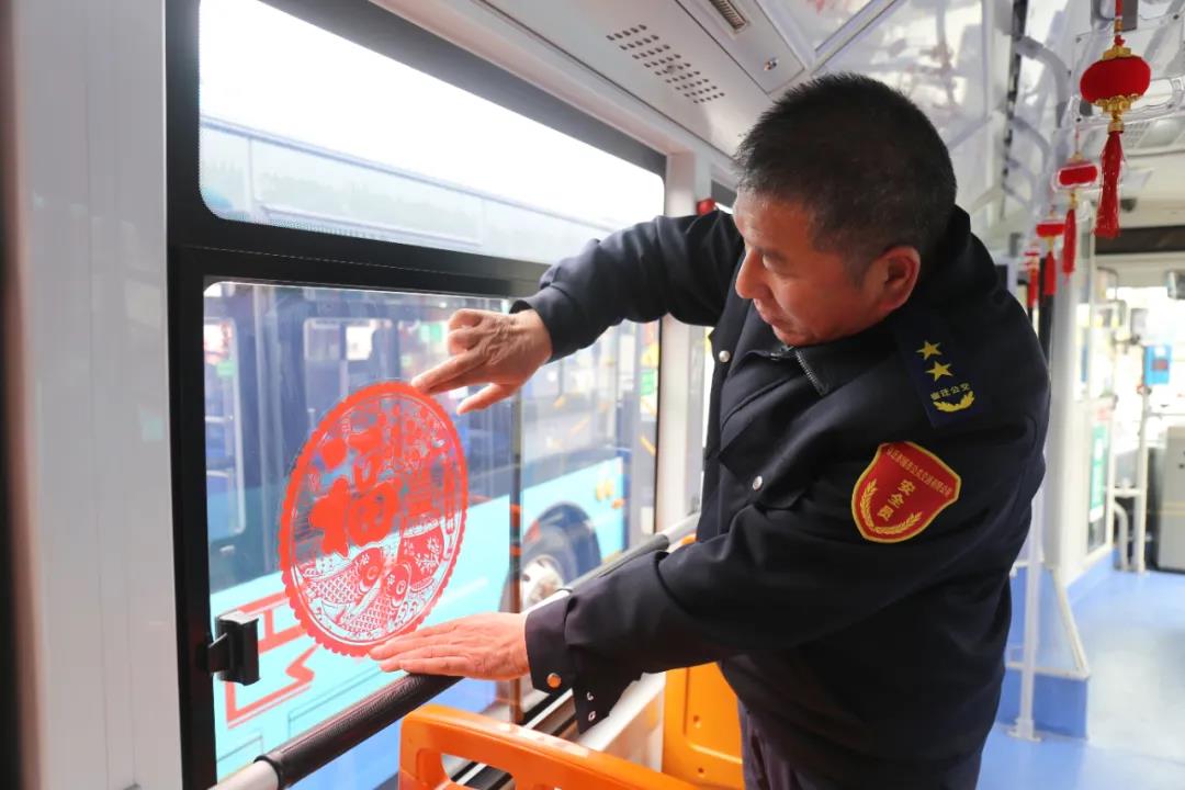“這個燈籠再掛高一點,大紅燈籠高高掛才好”“這個窗花真漂亮,往車窗上一貼立馬喜慶了不少”“虎年接續(xù)奮斗,看我虎虎生威”......小年剛過,新車駕駛員們立即忙活起來,盛裝打扮自己的“公交兄弟”,貼窗花、懸燈籠、掛福袋有條不紊,每位駕駛員都盡心盡力把自己的車輛裝扮到最美,讓市民一上車就能感受到節(jié)日的溫暖。