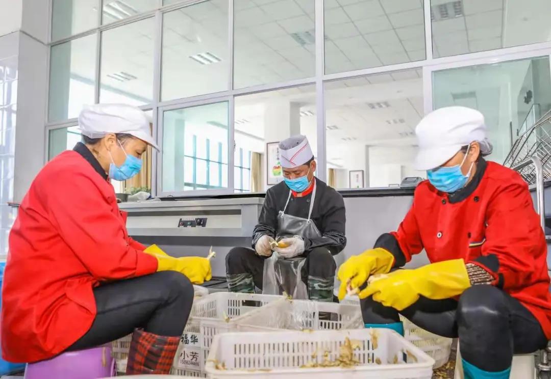 擇菜、清洗、改刀,工序繁瑣、耗時(shí)耗力;蔬菜、肉類、面點(diǎn),種類繁多、營(yíng)養(yǎng)均衡;紅燒、煎炸、爆炒,烹飪方式多樣,色香味形俱全;出菜、裝盒、運(yùn)送,繁忙有序、有條不紊。