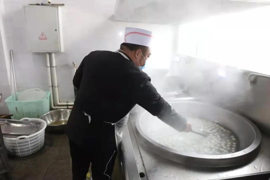 “今天是元宵節(jié),我煮了黑芝麻、花生、香芋餡料的湯圓,大家多吃點(diǎn),就像在自己家里一樣”。午飯時(shí)分,廚師長(zhǎng)陳啟東熱情地給大家盛湯圓。不一會(huì)兒功夫,滿滿兩大鍋的湯圓連湯帶水全部見底。