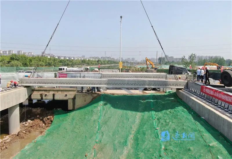5月15日,北京路快速化改造工程1標(biāo)段古黃河跨河橋梁成功完成首片板梁架設(shè),拉開了北京路項(xiàng)目建設(shè)新序幕。