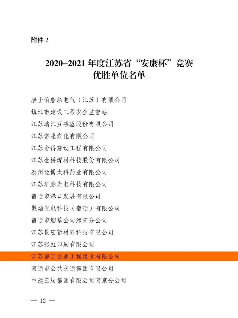【宿遷交建】榮獲省“安康杯”競賽“優(yōu)勝單位”榮譽稱號