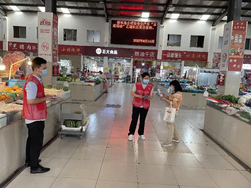 6月14日下午,停車場(chǎng)公司黨支部聯(lián)合府前社區(qū)黨委開展安全生產(chǎn)宣傳“進(jìn)社區(qū)”活動(dòng)。此次活動(dòng)主要在社區(qū)人流量密集的菜場(chǎng)及小區(qū)廣場(chǎng)周邊開展,宣講工作人員為菜場(chǎng)商販、社區(qū)民眾詳細(xì)講解了安全相關(guān)知識(shí),切實(shí)增強(qiáng)人流密集場(chǎng)所及社區(qū)居民的安全防范意識(shí)。