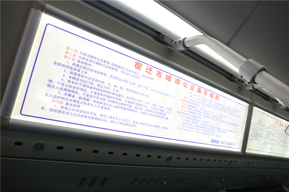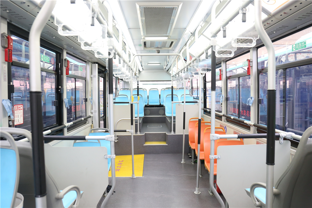淺藍色和暖黃色的車身涂裝,超大前置車窗,緊湊的車廂布局,大方美觀的內(nèi)置燈箱宣傳畫面,完美詮釋了顏值即戰(zhàn)斗力。為提高乘客出行舒適度和滿意度,公交公司一手精心布置車廂內(nèi)飾,安裝向善向美、共享文明的公益廣告畫面,懸掛體現(xiàn)企業(yè)文化特色的裝飾掛件,張貼乘客須知公告和線路運行地圖,營造文明和諧美觀的公交車廂環(huán)境;一手科學(xué)制定新能源車輛分配方案,根據(jù)線路運營實際需求穩(wěn)步推進新老車輛更替,及時增加運營車輛補充線路運力,確保新采購車輛用得了、用得好,讓公交形象美起來、活起來,為公交品質(zhì)服務(wù)化好“靚麗妝”。
