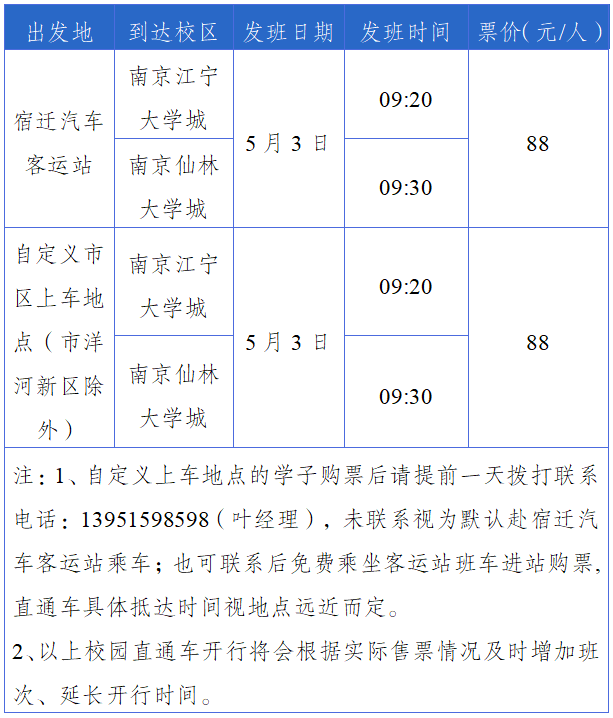 【宿汽集團(tuán)】宿遷“五一”校園直通車(chē)來(lái)了!免費(fèi)上門(mén)接送!