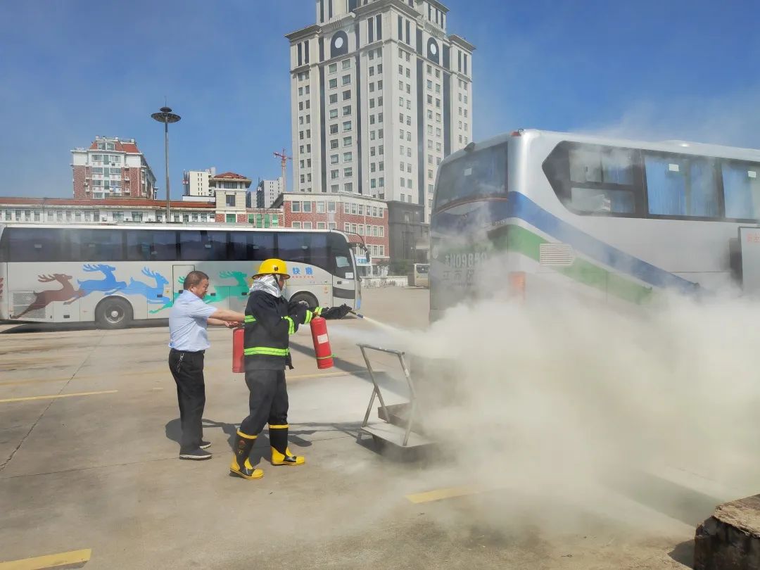 演練過程中,以客車突發(fā)“火災(zāi)”為背景案例,隨著濃煙升起,駕駛員迅速停車打開車門,快速有序疏散車上旅客至安全地帶,然后關(guān)掉電源取下隨車滅火器,對準(zhǔn)著火部位正面根部噴射,撲滅火災(zāi),并迅速立即撥打119消防部門報警,真正做到即停車、人撤離、速報警的演練目標(biāo)要求,達(dá)到了預(yù)期效果。