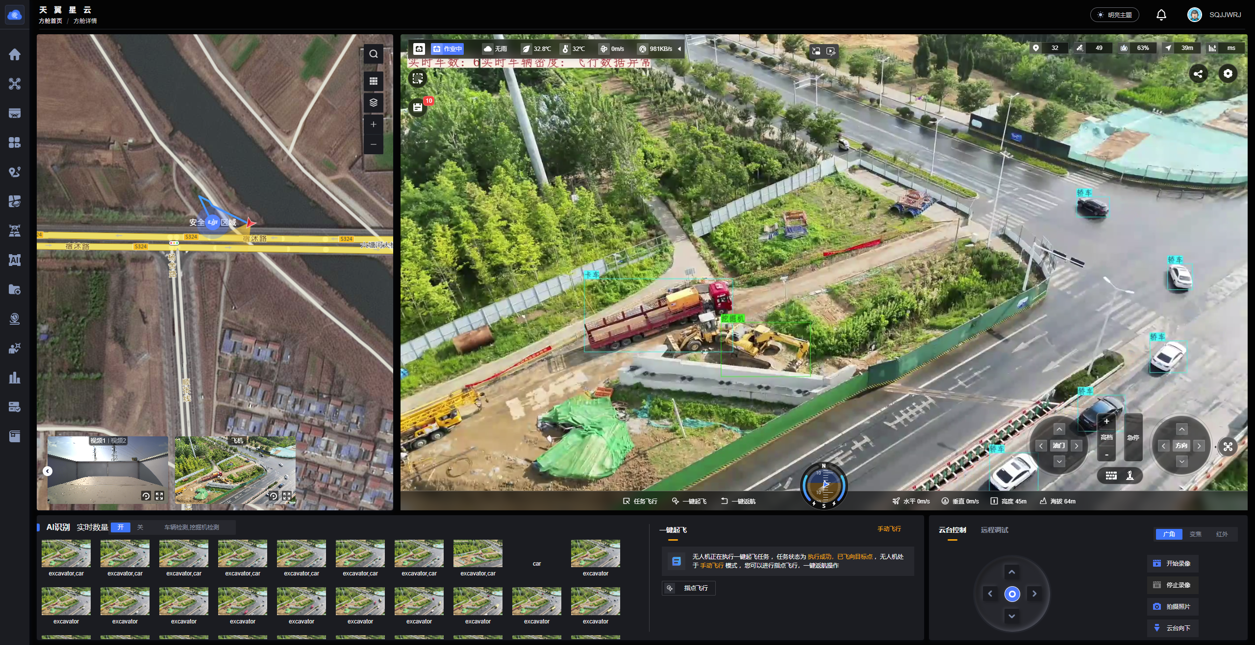 此外,在宿遷大道快速化改造工程3標(biāo),無人機(jī)正在代替安全員進(jìn)行巡檢,越是在施工忙碌的時候,無人機(jī)飛得更勤。它一路攀升到60米高空,項(xiàng)目施工進(jìn)度、安全生產(chǎn)等情況全都被高清鏡頭“收入囊中”,化作實(shí)時數(shù)據(jù)流,飛速傳輸?shù)绞屑夛w控平臺里,利用內(nèi)置AI算法自動識別隱患行為,并自動標(biāo)記位置、推送預(yù)警、督促整改,形成全鏈條管理閉環(huán)。