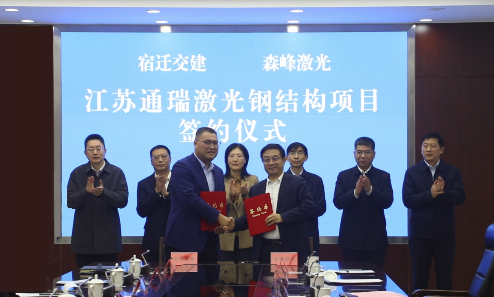 市政協(xié)副主席,宿遷交通集團總經(jīng)理史明霞,市國資委黨委書記、主任楊衛(wèi)國,宿遷交通集團黨委書記邵巖,濟南森峰激光科技股份有限公司董事長李峰西參加簽約儀式。