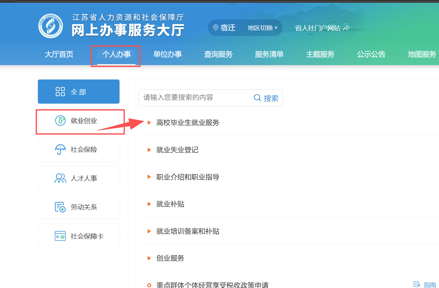 注冊登陸江蘇省人力資源和社會保障廳網(wǎng)上辦事服務(wù)大廳。按照下圖所示步驟操作報名。